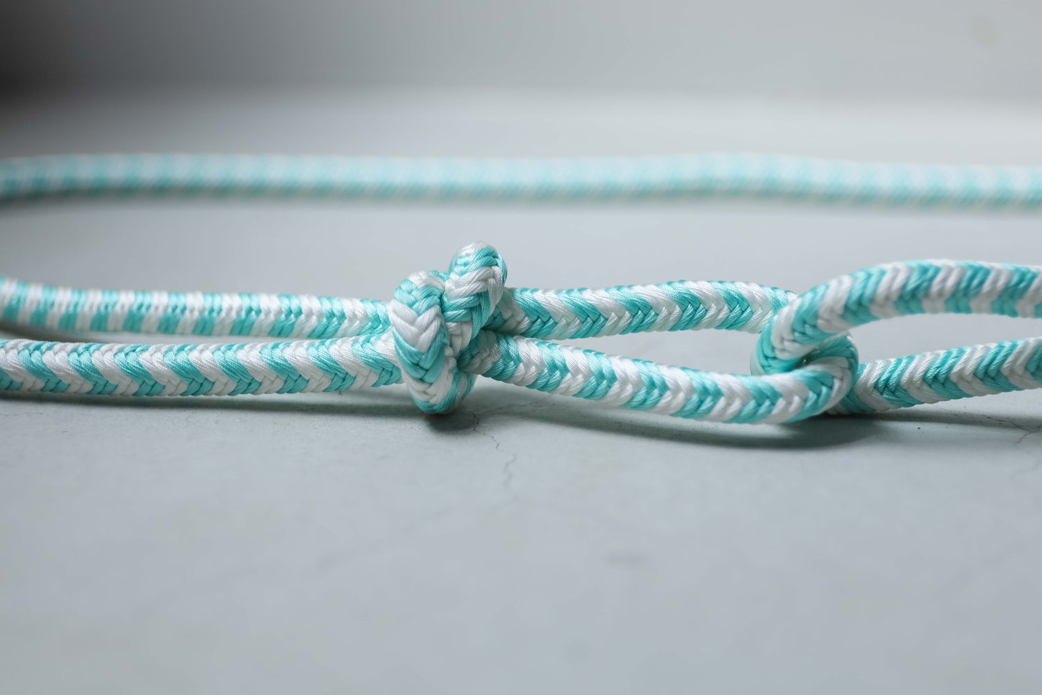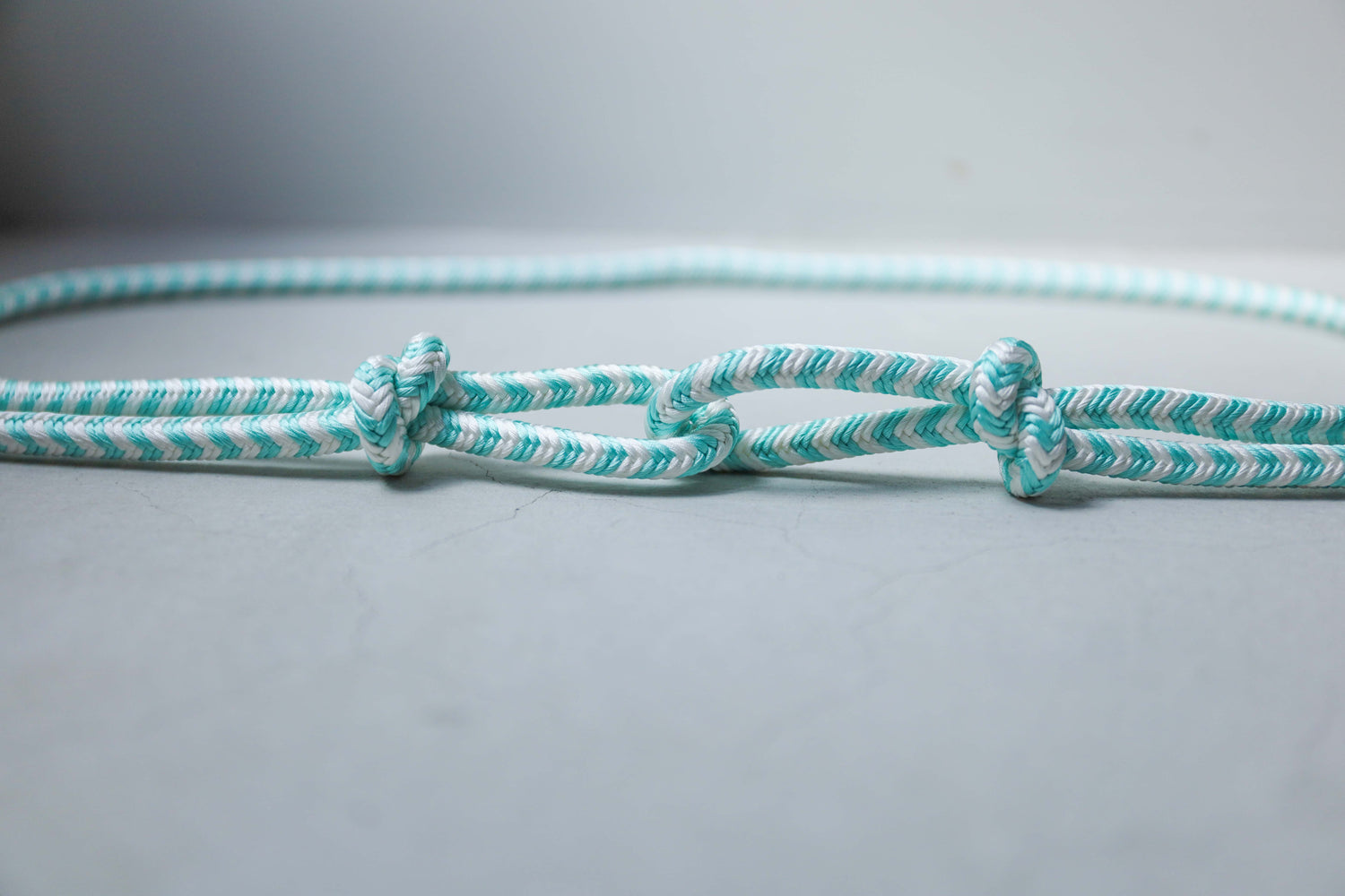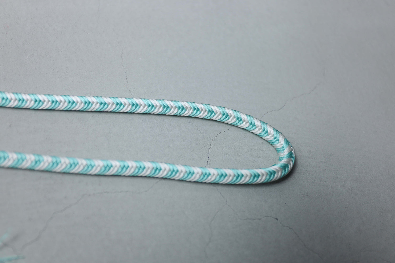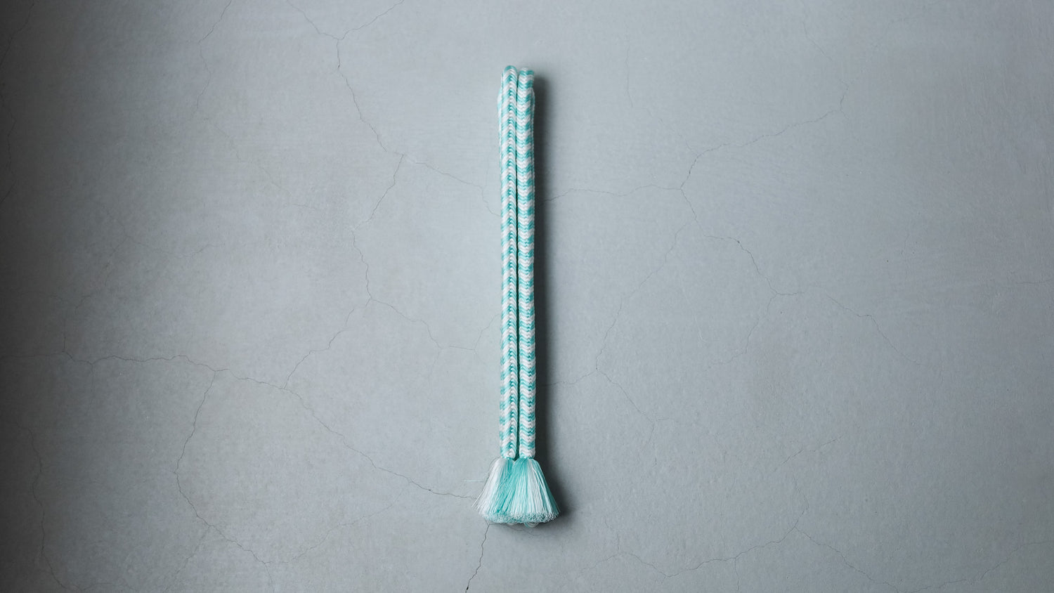 ソーダのように鮮やかな水浅葱と、冷たいアイスのような白。結びやすい奈良組の技法で組まれたこの組紐ベルトは、締めるたびにスパイラルのように気分をぐんぐん上げてくれる、楽しくはじけたいときのための一本です。